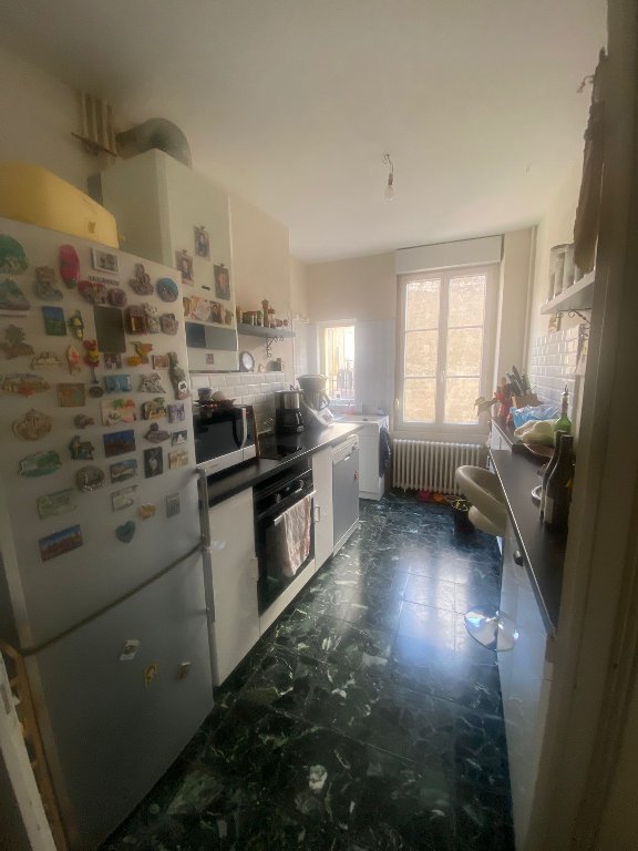 BEL IMMEUBLE DE CARACTERE élevé sur caves. Il est composé de 3 appartements de type T3 réparti sur chaque niveau, avec de beaux volumes et une distribution fonctionnelle comprenant ; une entrée avec couloir desservant un salon/salle à manger, une cuisine équipée, deux chambres, une salle de bains et WC séparé.