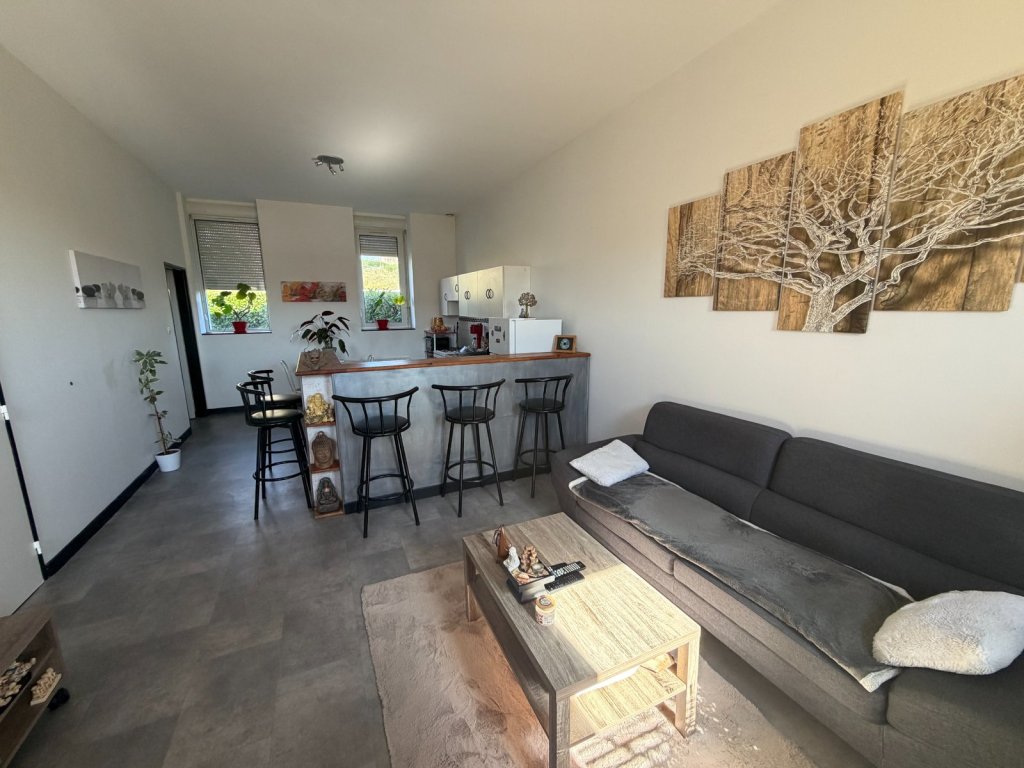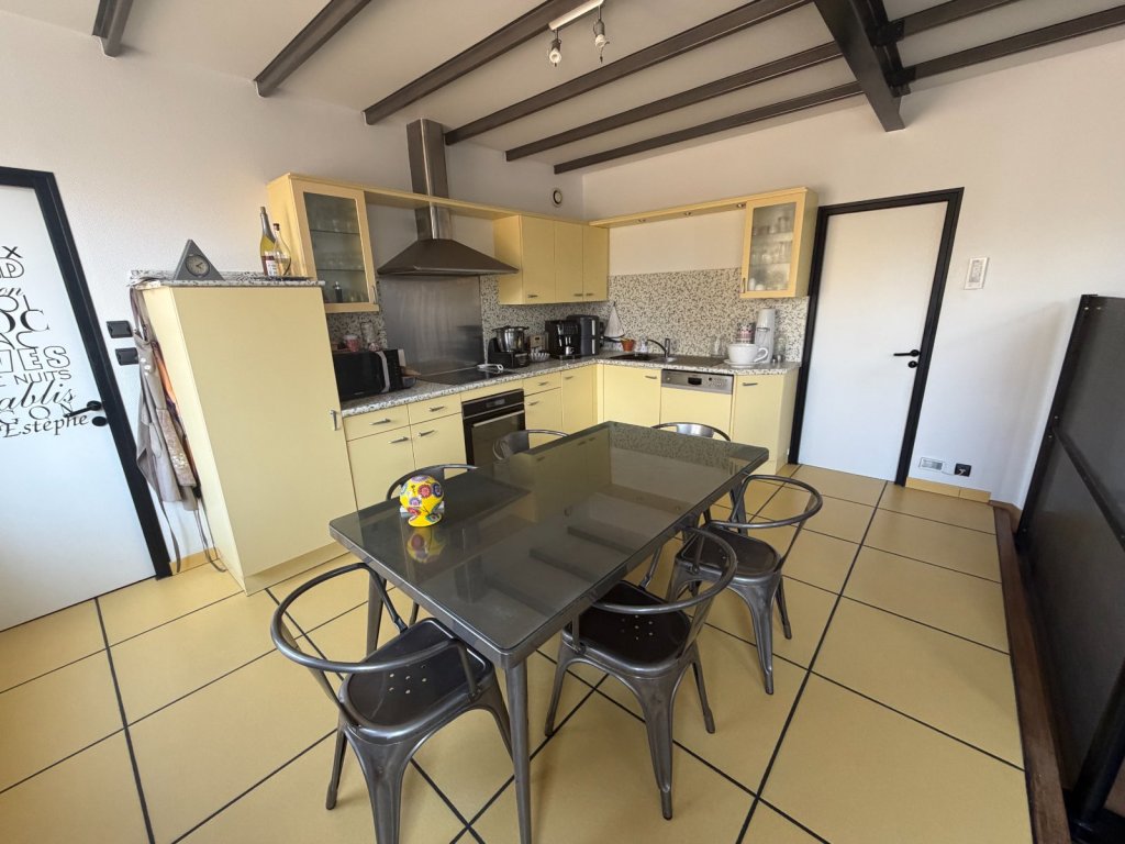 Une vaste pièce de vie baignée de lumière avec de belles poutres apparentes mais aussi de grandes ouvertures et une belle hauteur sous plafond. LA cuisine ouverte aménagée et équipée, s'intègre parfaitement à l'espace, créant un lieu convivial idéal pour recevoir. Vous y trouverez également des espaces de rangement avec placards à l'entrée, un WC et une salle d'eau.